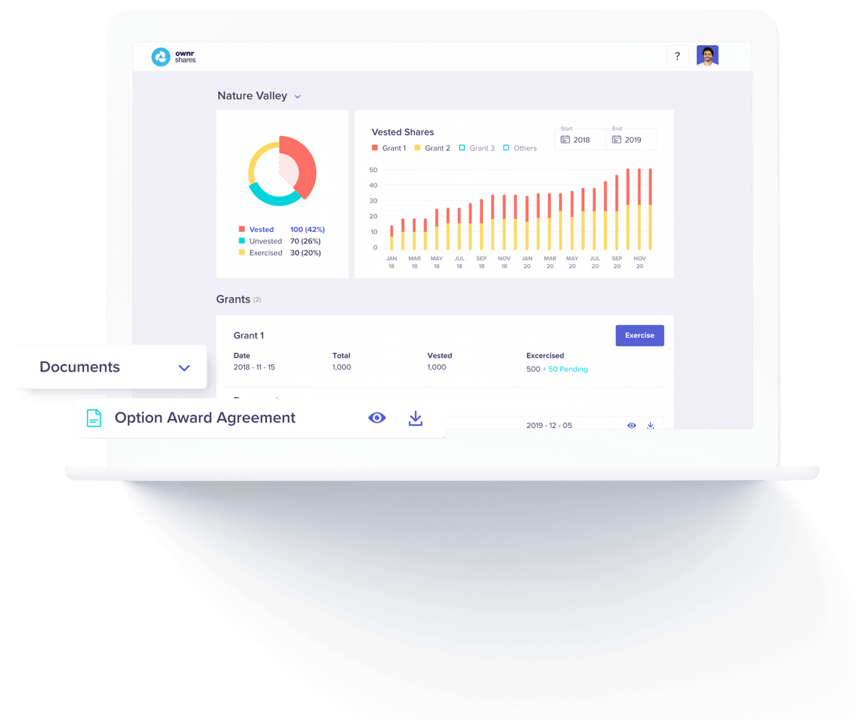 An intuitive portal where employees can track the status of options as they vest in real-time.
