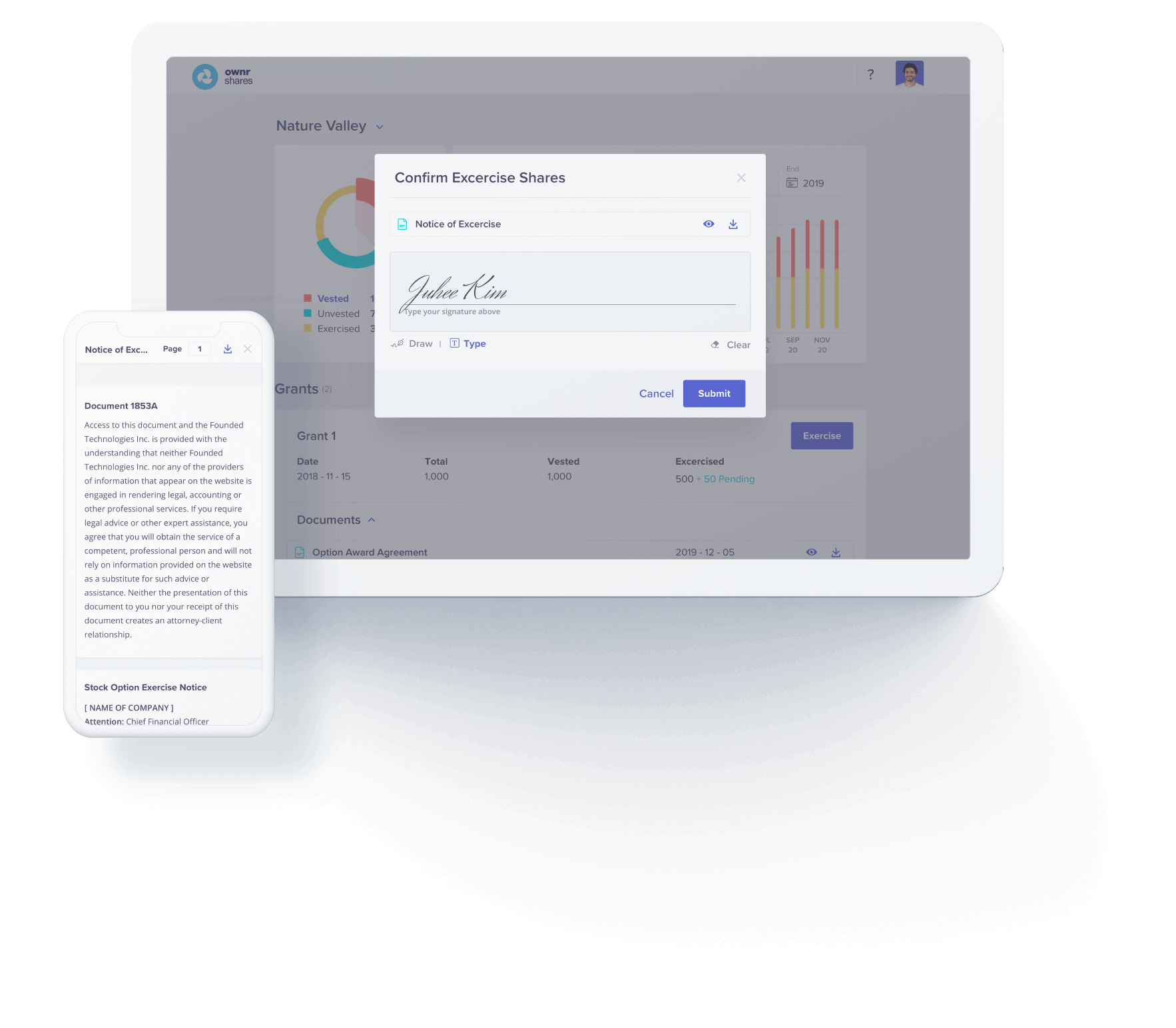 From creating your ESOP to purchasing shares, all legal documents are customized for your Company.